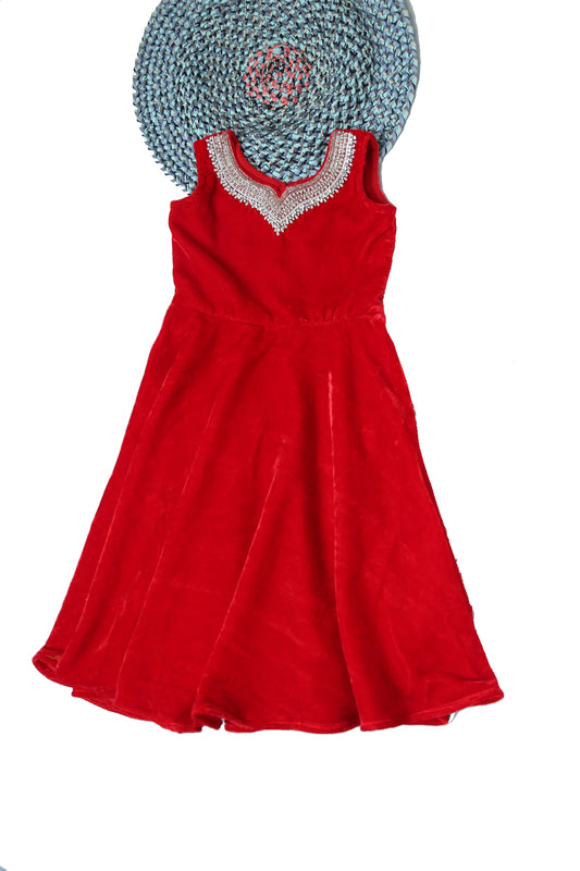 Enchanted Red Velvet & Pink Satin Floral Overcoat Frock(Pre Booking)