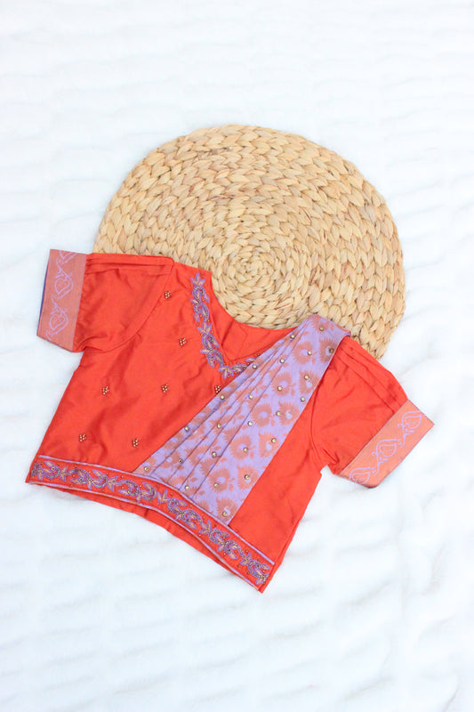 Orange Purple Half Saree Style Top & Skirt for Girls - Traditional Elegance